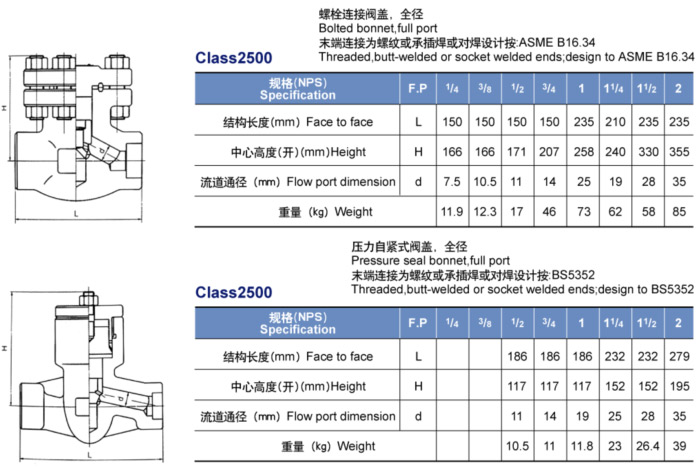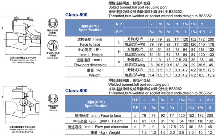 內螺紋與承插焊止回閥